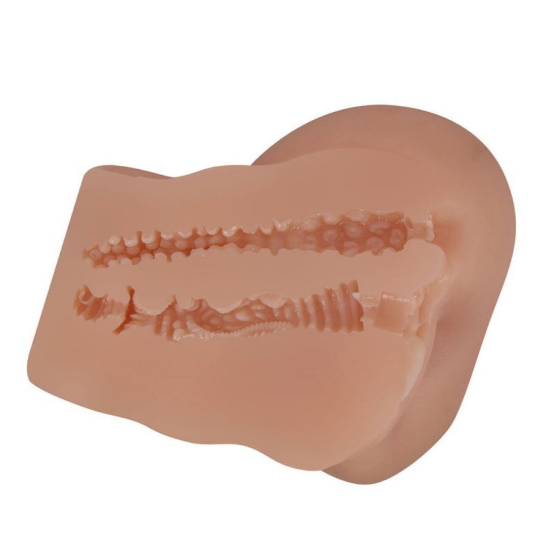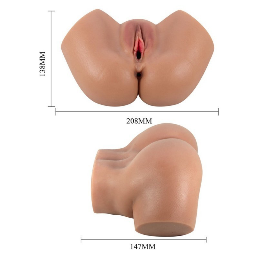 Descripción: Masturbador con diseño, tamaño y peso realista, Dos entradas diseñadas para máxima estimulación de Ano y Vagina, Texturas internas que envuelven y estimulan profundamente, Material suave y flexible con un tacto auténtico.